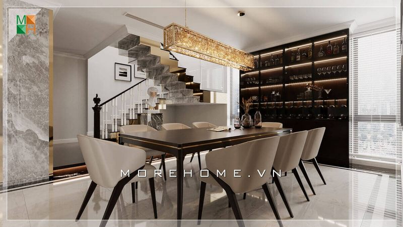 Một mẫu thiết kế sắc nét về không gian phòng ăn đẹp, sang trọng tiện nghi hiện đại cho chung cư, nhà phố, biệt thự.