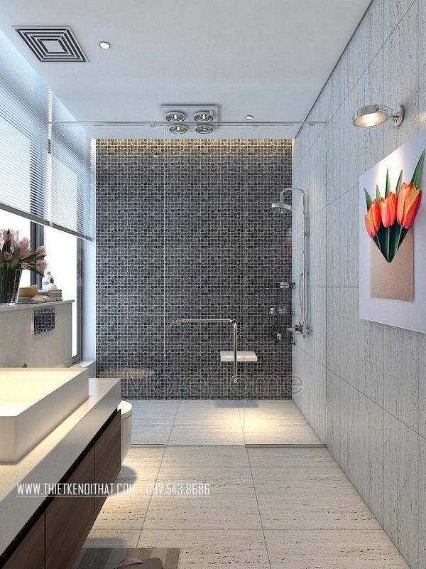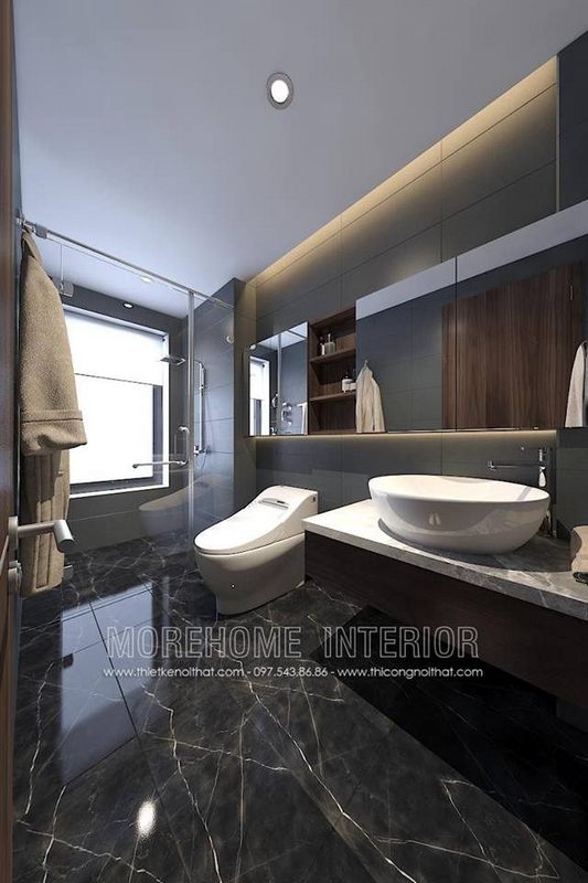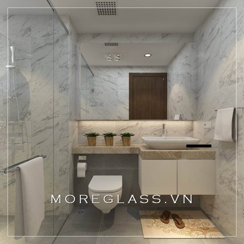 Gợi ý mẫu thiết kế nội thất phòng tắm nhỏ gọn, hiện đại cho căn hộ chung cư có diện tích hạn chế.