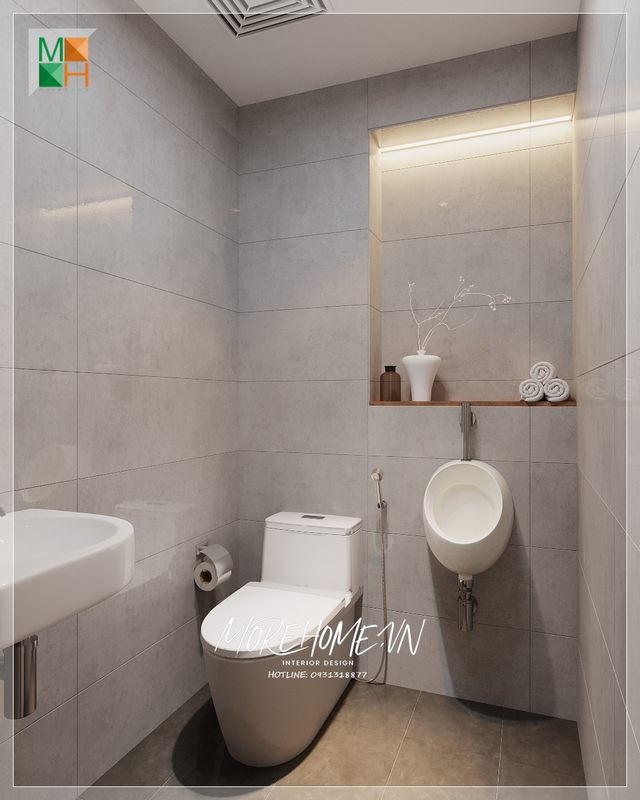 Độc đáo với mẫu nhà vệ sinh hiện đại với nội thất đơn giản, tiện nghi sử dụng gạch ốp tường màu trắng vân mây sang trọng, cuốn hút.
