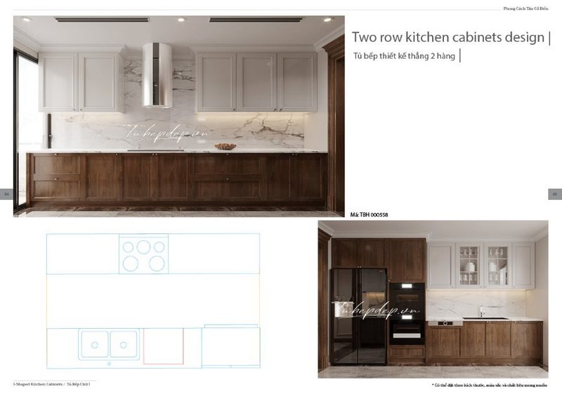 Thiết kế tủ bếp gỗ chữ i kiểu dáng song song dành cho nhà chung cư bằng cách tận dụng tối đa diện tích không gian cho người nội trợ sự thoái mái cao nhất cho hoạt động nấu nướng