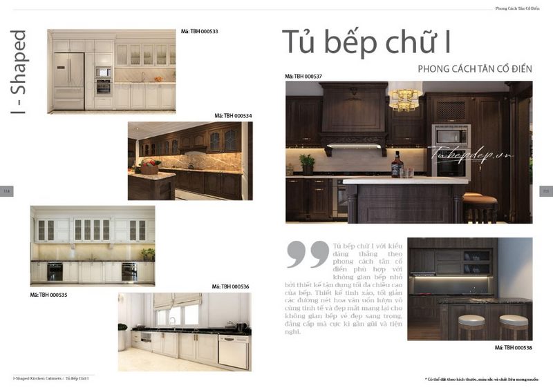 MoreHome tư vấn sử dụng mẫu tủ bếp tân cổ điển kiểu chữ i gọn gàng cho không gian bếp tiện nghi, cao cấp