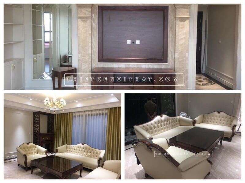 Hình ảnh công trình thi công nội thất phòng khách chung cư D'capital phong cách tân cổ điển sang trọng