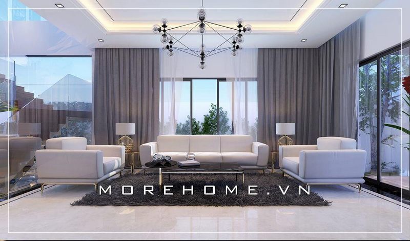 Thiết kế nội thất phòng khách hiện đại, đẹp cho phòng khách biệt thự, nhà phố có ban công.