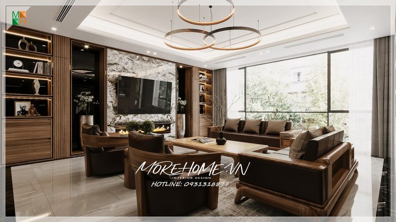 Thiết kế phòng khách biệt thự hiện đại mang đến sự sang trọng và tinh tế cho không gian sống của tổ ấm gia đình Việt.